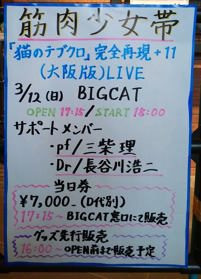 「猫のテブクロ」完全再現+11ということで、私があんまり知らない頃の筋少が味わえると思うと期待と不安が入り混じります。